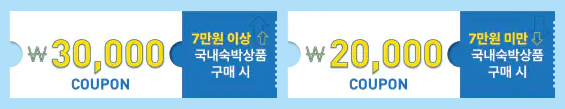 | 일반 할인권 | 비수도권 지역 숙박업소 이용 시 | 7만원 이상 예약 시 3만원 할인, 7만원 미만 예약 시 2만원 할인 |